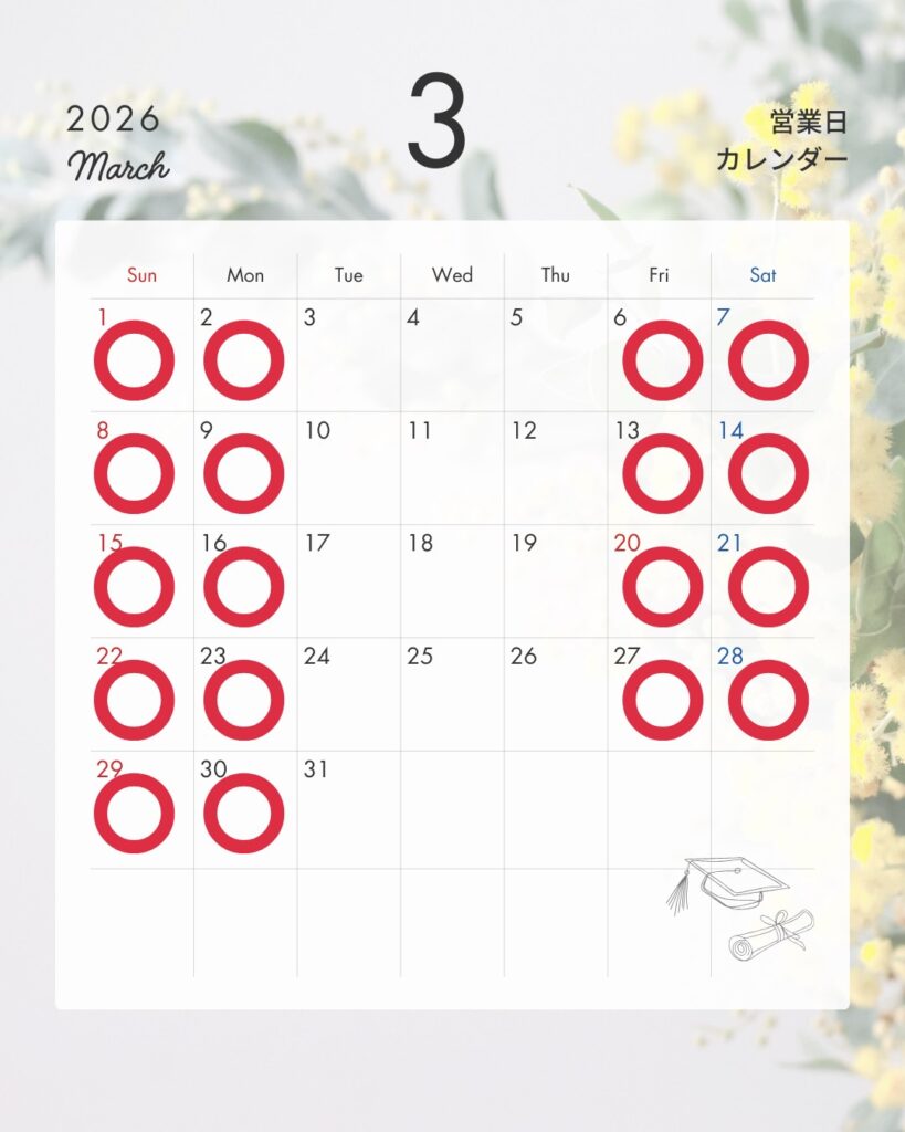 【3月営業日のお知らせ】別府市の整体ならSBP整体院へ