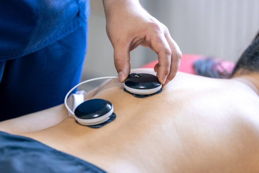 電気の力で筋肉をほぐし、回復促進&痛みの緩和!整骨院で一般的な「低周波」から痛みに特化した「高周波」まで通電可能!痛みを一気に取り除きます。